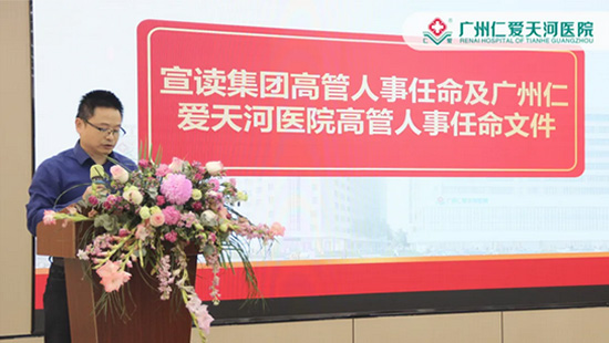 在大会的初始阶段,集团信息中心总监兼财务总监莫斌,以及医院院长助理曹被秀,分别宣读了广东仁爱医疗健康产业集团中高层管理人员以及广州仁爱天河医院领导班子、中层管理干部的任命文件。