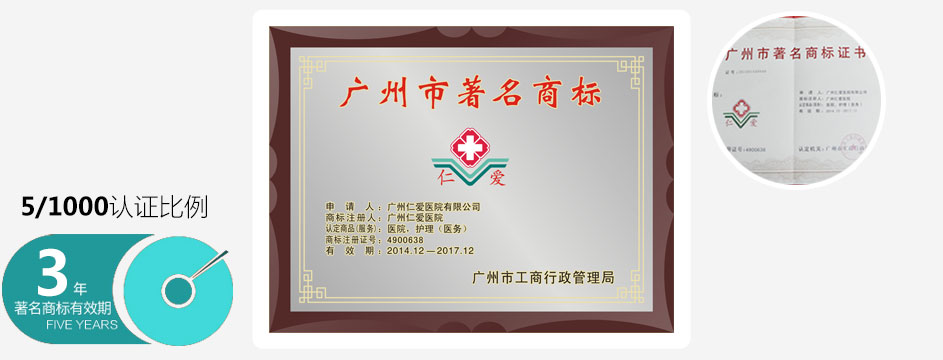 广州仁爱医院荣获广州市工商行政管理局颁发的“广州市著名商标”,成为广州获此殊荣的专科医院。著名商标认定都有着严格的审核条件和申报程序,具有较高市场声誉和商业价值,且最终认定比例仅占注册商标总数的千分之五,一经认定,有效期为3年。此次“广州市著名商标”的获得充分证明了“广州仁爱”品牌具有较高的市场信誉和竞争力,树立了民营医疗机构规范化、先进化的标杆。